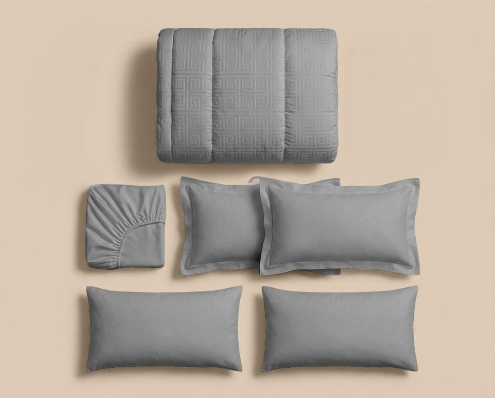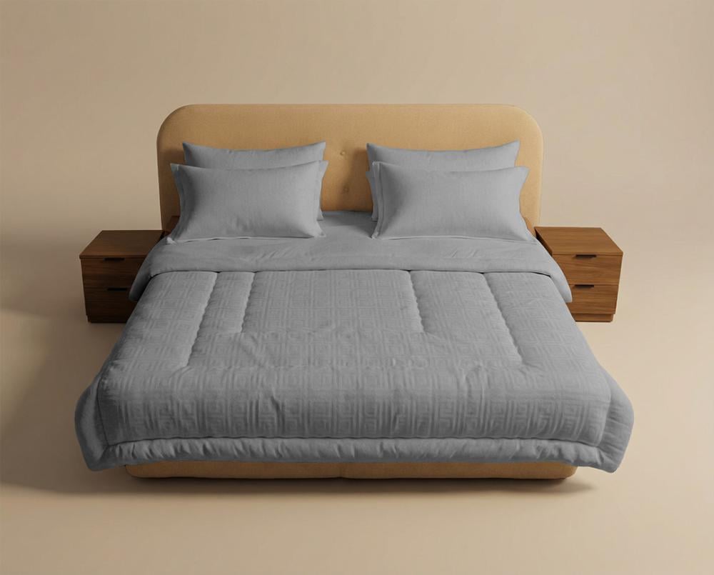 🛏️ مفرش سرير بحشوة ثابتة | فندقي فاخر | رمادي أو أبيض | تصميم يوناني | متعدد المقاسات